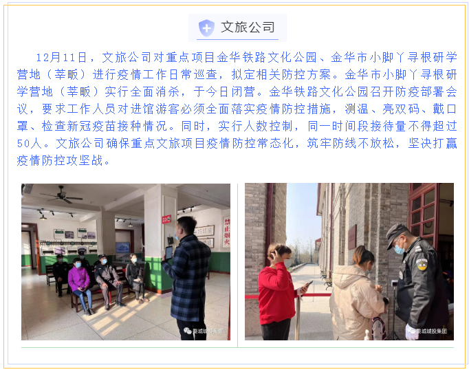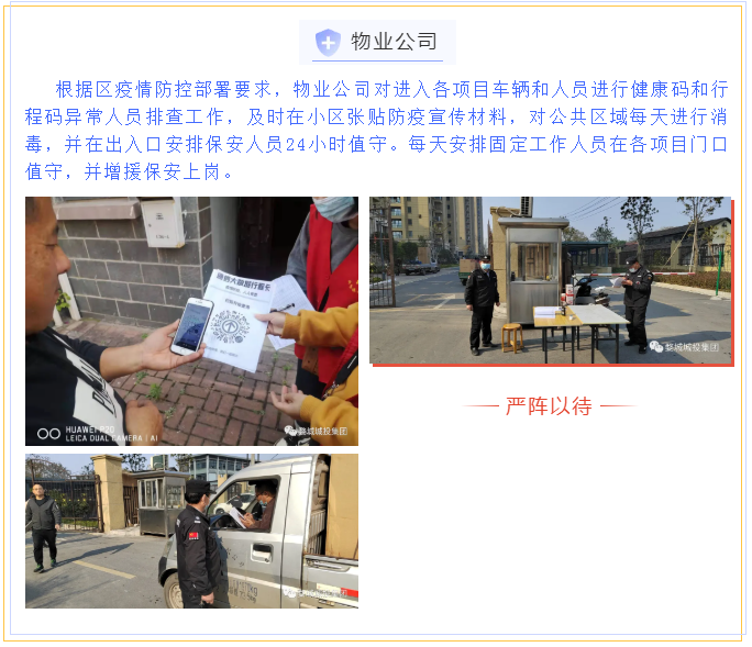 繼省、市、區(qū)疫情防控工作視頻會議召開后,婺城區(qū)城投集團深刻認識到疫情防控形勢的嚴峻性、復(fù)雜性、緊迫性,從“平時”模式轉(zhuǎn)入“戰(zhàn)時”機制,12月11日,集團全面部署、立即落實,第一時間印發(fā)《關(guān)于進一步健全完善疫情防控工作體系的通知》,制定《金華市婺城區(qū)城鄉(xiāng)建設(shè)投資集團有限公司疫情防控督查表》,在周末全員不休,集中精力開展重點項目和主要場所疫情防控攻堅的基礎(chǔ)上,組織其余干部職工前往聯(lián)系社區(qū),會同社區(qū)工作人員開展疫情防控工作,壓緊壓實責任,以鐵的擔當、鐵的紀律對疫情防控工作進行再細化、再落實,一鼓作氣堅決打贏這場疫情防控阻擊戰(zhàn)。