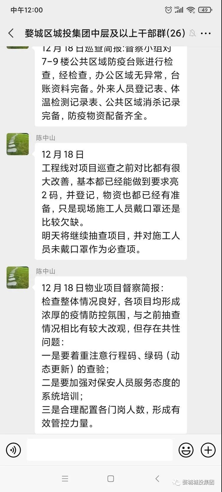 連日來,面對突如其來的疫情,婺城區(qū)城投集團紀檢督查專班嚴格按照區(qū)委區(qū)政府、集團黨委的部署要求,切實履職盡責,充分發(fā)揮督導“利劍”作用,助推疫情防控工作落實落細,筑牢疫情防控陣地。集團黨委書記、董事長、總經(jīng)理張紹華親自坐陣督戰(zhàn),深入一線開展精準監(jiān)督,督促各子公司、各部門履行疫情防控主體責任,用實際行動踐行忠誠與擔當。